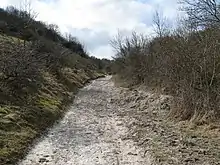 Ashcombe Bottom is a woodland valley that runs south from Blackcap. One corner is in the East Chiltington parish while the majority is in St John Without. In 1993 Ashcombe Bottom (TQ 373 118) was bought by the National Trust with Blackcap, Mount Harry, Win Green and most of the scarp. It is rich in scrubland species and has oak, ash, silver birch, hazel, bryony, rosebay willowherb, spindle, honeysuckle and occasional wood sage.[8] The ash which is being managed for ash dieback. It is a biodiverse area with many butterflies and migrant birds in spring.