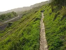 The Saxon Shore Way and North Downs Way, (long distance trails lead through the park between Folkestone and Dover, via Capel-le-Ferne. [16]