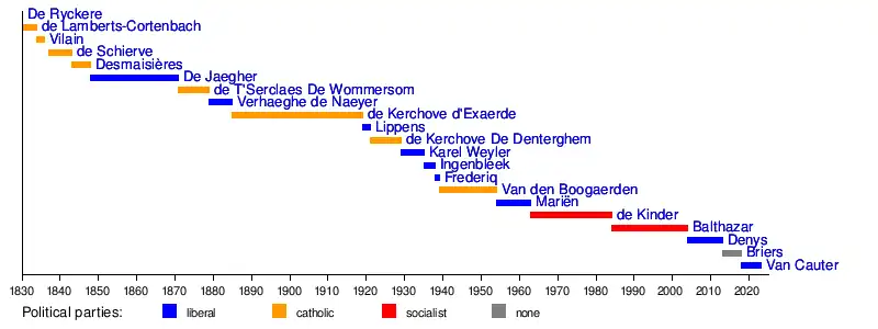 - 1921–1929: André de Kerchove de Denterghem (lib.)
