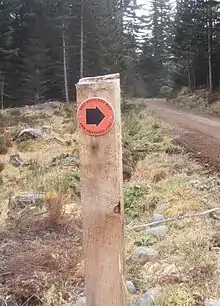 The East Highland Way (Scottish Gaelic: Slighe Gaidhealtachd an Ear) is a long-distance walking route in Scotland that connects Fort William (56°49′04″N 5°06′39″W / 56.8178°N 5.1109°W) with the ski and mountain resort of Aviemore (57°11′24″N 3°49′45″W / 57.1899°N 3.8292°W).[1] The route was described by Kevin Langan in 2007. The name is derived from the fact that the route terminates in Aviemore at the eastern edge of Highland region. The EHW route takes in a varied and wild landscape through deep forest plantations, passing many highland lochs and negotiating unspoilt marshlands. The route also explores the ancient Caledonian forests of Inshriach. The walk is 82 miles (132 km) long.