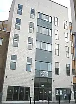 In 2009 phase 2 commenced,[6] a nine-storey addition on the Fieldgate Street side to be known as the Maryam Centre, on a site originally used by the mosque's funeral services,[7] designed by the same architect.[8] The Maryam Centre opened to the public on 4 July 2013, adding a new main prayer hall, improved funeral services, a visitor centre, and over five floors of facilities for women including prayer spaces, education facilities, a fitness centre, and support services.