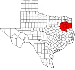 ![]() Map of Texas highlighting counties served by the East Texas Council of Governments | |