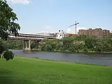 The bridge was closed in the 1990s and a replacement bridge was required.[1]:25 In 1998, the demolition and construction of a modern bascule bridge replaced the previous East Washington Avenue Bridge.[1]:25 The railings were upgraded and the original operator's house and connected toilet-building were restored.[1]:25 In 2010, the current state of the bridge listed the deck and superstructure conditions as "Good" and the substructure condition as "Satisfactory".[3] In 2013, the East Washington Avenue Bridge was described by officials as rarely opening to accommodate marine traffic.[10]