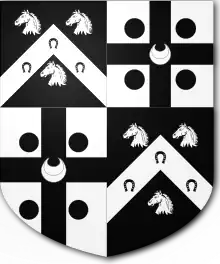 Escutcheon of the East baronets of Hall Place, quartering Clayton