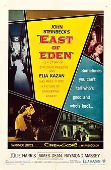 East of Eden is a 1955 American period drama film directed by Elia Kazan and written by Paul Osborn, adapted from the fourth and final part of John Steinbeck's epic 1952 novel of the same name.