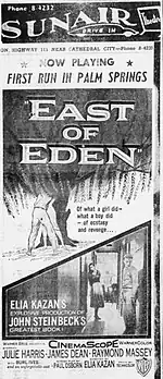 - 1 2 Crowther, Bosley (March 10, 1955). "The Screen: 'East of Eden' Has Debut; Astor Shows Film of Steinbeck Novel". The New York Times. Retrieved August 4, 2013.