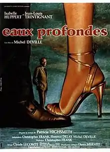 Eaux profondes is a 1981 French thriller film directed by Michel Deville that stars Isabelle Huppert and Jean-Louis Trintignant.[1] Based on the novel Deep Water by Patricia Highsmith, it tells the story of a man who regains his wife's affections by killing two of her lovers.