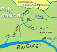 The Ebola River (/iˌblə/ or /əˈblə/),[1][2] also commonly known by its Ngbandi name Legbala,[3] is the headstream of the Mongala River, a tributary of the Congo River, in northern Democratic Republic of the Congo.[4] It is roughly 250 kilometers (160 mi) in length.