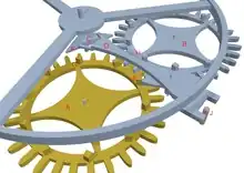 Breguet realised that this problem (more serious at the time because of the rather poorer oils then available) could be removed and many of the advantages of the detent escapement retained if an impulse were given in both directions of the balance. In order to do this he geared two escape wheels together, one escape wheel driven by the fourth wheel of the wheel train, which in turn was geared to and drives a second escape wheel. A pivoted detent swings freely between them and locks each escape wheel in turn on a coaxial set of locking teeth.
