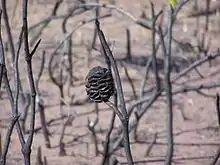 Immediately after bushfire, granivorous birds move in to extract seed from newly open follicles, and to eat seeds that have fallen to the ground. Those seeds that escape the granivores are soon buried by wind and surface water. Nearly all buried seeds germinate.