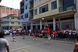 The beginning of this variant volleyball game needs to be clarified. It is believed that some type of game similar to this already existed prior to European contact.[1] While it is adherent that Volleyball was invented in 1895, and the first world tournaments were held 1949, organized tournaments of Ecuavolley were held in 1958, suggesting it could not have spread throughout the world that quickly, which would mean that the national volley game was developed independently and had a convergent evolution.[2] Ecuavoley tournaments in neighborhoods were held by different organization since 1944.