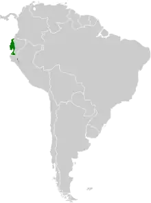 The nominate subspecies of Ecuadorian ground dove is found from Esmeraldas Province in northwestern Ecuador south to Peru's far northern Department of Tumbes. C. b. dorsti is found separately, in the Marañon Valley of northwestern Peru.[2][4] They inhabit a range of landscapes including dry open semi-deciduous and deciduous woodland and thicker woodland, gardens, agricultural areas, and more humid young secondary forest. In elevation the species ranges from sea level to 2,000 m (6,600 ft).[4]