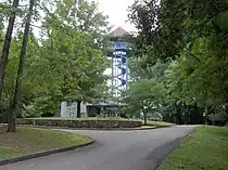The earliest Euro-American settlers in the DeKalb area arrived in the late 1790s and established the town of Liberty just west of the modern park.[6] Over the years, several families settled in the hollows and valleys of what is now Edgar Evins State Park and adjacent lands that would eventually be inundated by Center Hill Lake. One such settler, Alexander Dunham (1826–1878), whose family arrived in the area in the 1830s, is buried on a hill within the park that overlooks Center Hill Lake. Dunham's son lived near the present site of Center Hill Dam.[7]