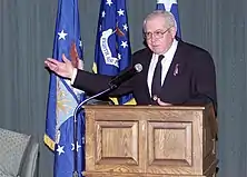Retired Lieutenant General Edgar S. Harris, Jr. speaks during the Eighth Air Force 60th Anniversary dinner at Barksdale Air Force Base, Louisiana.