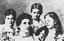 Day married Alexanderina "Ina" Sutherland (born c. 1863) in 1887.[2] Sutherland was the youngest of 5 daughters to a tea merchant, John Sutherland in Cobourg, Ontario. They had 4 children, Elsie Margaret, Ina Ansley, George Sutherland, and Edgerton Winnett "Ted" Day.[2] The oldest daughter, Elsie, born 1889 completed her education at St. Hilda's College, University of Toronto. She married a dentist, Robert Arthur Rooney, and had 3 children. She died in 1975.[14] The second daughter, Ina Ansley, born 1891 also completed her education at St. Hilda's College in Toronto. She married Ed Brennan, and had one daughter, Ina.[14] She died in 1987.[17] The elder son, George Sutherland, born 1894, attended college in Toronto, and served in World War I overseas for four and a half years. While overseas, he served for almost 2 years at the London Administration Office as paymaster for all Canadian Forces. Upon his return to Canada, he worked at the Soldier Settlement Board, and then as an insurance adjuster.[16] He died in 1985. The youngest son, Edgerton Winnett, Jr. "Ted", born 1901, worked as a lawyer and served as a colonel with the 49th Battalion, CEF. He worked at the office of the Judge's Advocate in Ottawa upon his return from overseas. He died in 1982.[16][18]