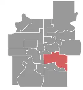 Edmonton-Mill Creek electoral district was created in the 1996 boundary redistribution from the old electoral district of Edmonton-Avonmore and a small part of Edmonton-Gold Bar electoral districts, and named for the Mill Creek Ravine which runs through Edmonton. The 2010 electoral boundary re-distribution saw the riding boundaries shift southwards. The 2003 south boundaries which ended at 23 Avenue were moved further south into Edmonton-Mill Woods and Edmonton-Ellerslie to end at Anthony Henday Drive. The northern boundaries of the riding were also pushed south from 92 Avenue to the Sherwood Park Freeway at its most northern point.[1]