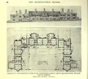 In the 1880s and 1890s, architects G. W. & W. D. Hewitt designed more than 100 houses in the Chestnut Hill section of Philadelphia for developer Henry H. Houston. A generation later, Dr. George Woodward, Houston's son-in-law, hired Gilchrist, H. Louis Duhring Jr., and Robert Rodes McGoodwin to expand the planned community, building dozens of freestanding houses and attached houses grouped to look like manor houses. The Woodward houses were rental properties and, a century later, most remain so.