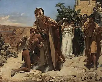 Two years later, he was accepted at the Royal Academy of Fine Arts (Antwerp) and placed in the Master Class, where his instructor was Nicaise De Keyser.[1] He also studied genre painting with Polydore Beaufaux and Charles Verlat. Although he specialized in portraits, he also did Biblical scenes, history paintings and landscapes.