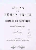 • Atlas of the human brain, and the course of the nerve-fibres, by Edward Flatau, with a preface by E. Mendel. Berlin, S. Karger, 1894. 25 pages.