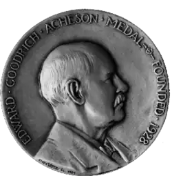 The Edward Goodrich Acheson Award was established by The Electrochemical Society (ECS) in 1928 to honor the memory of Edward Goodrich Acheson, a charter member of ECS. The award is presented every 2 years for "conspicuous contribution to the advancement of the objectives, purposes, and activities of the society (ECS)".[1]