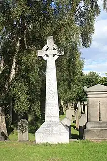He is buried on the western path of the original part of Grange Cemetery in southern Edinburgh. The large white marble memorial was restored By Hibernian Historical Trust in 2006.[7]