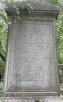 The death of his son Charles at Torquay in 1847, combined with his heavy losses from the failure of the Hall of Commerce, blighted the final years of Moxhay's life and it was said that he would spend many hours wandering in Epping Forest dreaming up unrealisable, grandiose schemes.[1] He died heavily in debt at his Stamford Hill home on 19 March 1849[3] and is buried on the west side of Highgate Cemetery.