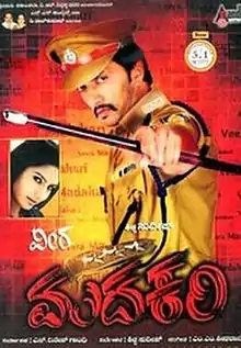 Ee Shatamaanada Veera Madakari (also known as Veera Madakari) is a 2009 Indian Kannada-language action film directed by Sudeep. The film features Sudeep in a double role alongside debutant Ragini Dwivedi in the lead roles. The film features a background score and soundtrack composed by M. M. Keeravani and produced by Dinesh Gandhi. The film was released on 20 March 2009.[3] This film is the remake of the Telugu blockbuster Vikramarkudu.[4]