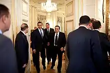 Ties between the countries temporarily soured during the overthrow of Egyptian President Mohamed Morsi on July 3, 2013, after a massive uprising against him.[30] The Obama administration denounced Egyptian attempts to combat the Muslim Brotherhood and its supporters, canceled future military exercises, and halted the delivery of F-16 jet fighters and AH-64 Apache attack helicopters to the Egyptian Armed Forces.[31] Popular sentiment among secular Egyptians towards the United States has been negatively affected by conspiracy theories claiming that the Americans had assisted the unpopular Muslim Brotherhood in attaining power [32][33][34][35] and by the Obama administration's policy of tolerance toward the Muslim Brotherhood and Morsi. However, in a 2014 news story, the BBC reported that "the US has revealed it has released $575 million (£338m) in military aid to Egypt that had been frozen since the ousting of President Mohammed Morsi last year."[36] In spite of Donald Trump's travel ban to neighboring and other Muslim-majority countries, relations between Egypt and the United States were expected to be warm.[37]