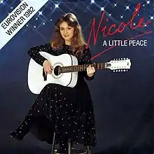 "Ein bißchen Frieden" (pronounced [aɪn ˈbɪsçən ˈfʁiːdn̩]; lit. "A Bit of Peace") is a German-language song, written by prolific German Eurovision-writing duo Ralph Siegel (music) and Bernd Meinunger (lyrics) for the Eurovision Song Contest 1982, held in Harrogate, United Kingdom.[1] It was performed by 17-year-old German high-school student Nicole Hohloch, resulting in Germany's first win at the Eurovision Song Contest by a record margin of 61 points, setting a new record for the largest winning margin that lasted until the Eurovision Song Contest 1997. Nicole's single is still the only Eurovision entry to top the sales charts in every territory it was released in.