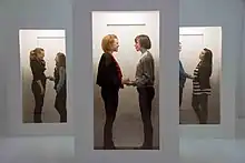 Amir's video and performance-based work present staged interventions and situations that cross fiction with reality.[10] Amir has appeared in some of her own works, and also makes use of actors and willing audience as participants in structured interactions in controlled environments, to illustrate and challenge societal norms.[11] Her earlier works are about issues of gender and social identity, and relate to her experience as a gay artist living and working in Israeli society.[12] Some of her works focus on the effects on individual people of power relationships structured by societal norms.[13][14]