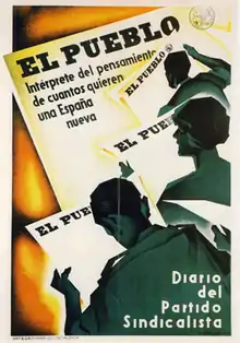 El Pueblo (The People) was a Spanish daily newspaper, the central organ of the Syndicalist Party during the 1930s. The paper had its headquarters in Valencia.[1] It had a moderate republican political stance.[1]