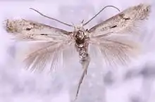 - ↑ Ellis, W N. "Elachista biatomella (Stainton, 1848) two-dotted dwarf". Plant Parasites of Europe. Retrieved 10 March 2020.