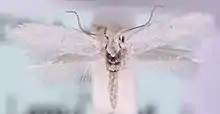 The wingspan is 7–9 millimetres (0.28–0.35 in).[2] Adults are on wing from late May to early July.