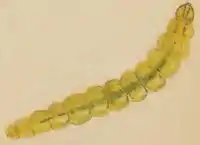 The young larvae make a short corridor that is stuffed with frass in spring. After hibernation, they vacate this mine and make a number of elongated blotches, all descending from the leaf tip.