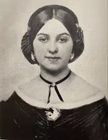 On May 24, 1859, Kearny married Elias Carr, a wealthy planter from Edgecombe County, in a large ceremony that was considered a big society event in Warren County.[1][2] She was given an elaborate wedding ring, an opal surrounded by diamonds, by her husband.[1] Upon her marriage, she moved to Carr's family's plantation, Bracebridge Hall.[1] Kearny and her husband had six children: William Kearny Carr, John Buxton Carr, Mary Elizabeth Carr, Elias Carr Jr., Eleanor Kearny Carr, and Annie Bruce Carr.[1][2] She converted to Episcopalianism after marrying Carr, but continued to attend both Methodist and Episcopal services.[1][4] She instructed her children in religious education and hired private tutors for schooling before sending her children to private schools.[1] As châtelaine of Bracebridge Hall, Kearny was known to run the household with efficiency and did much of the sewing and cooking herself.[1]