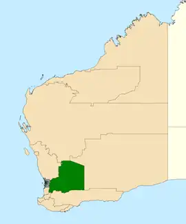 The original proposal had the newly created district persisting with the name Merredin.[1] However, this was the focus of several objections, as Merredin is but one town in the eastern part of this sizeable electorate.[2] Instead, the more generic name of Central Wheatbelt was adopted.