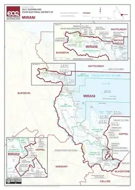 Mirani is an electoral district of the Legislative Assembly in the Australian state of Queensland. It is represented by Stephen Andrew, of Pauline Hanson's One Nation.[1]