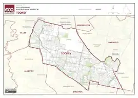 It largely covers the area of the abolished district of Sunnybank. Located in southern Brisbane, Toohey consists of the suburbs of Moorooka, Rocklea, Salisbury, Nathan, Coopers Plains, Robertson, MacGregor, Sunnybank, Runcorn and Eight Mile Plains.[1]