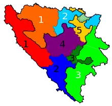 A map of the Parliamentary constituencies of the Federation of Bosnia and Herzegovina[3]
