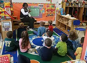 In 2017, there were 106,147 elementary schools (73,686 public, 32,461 private) in the United States, a figure which includes all schools that teach students from first grade through eighth grade.[2] According to the National Center for Education Statistics, in the fall of 2020 almost 32.8 million students attended public primary schools. It is usually from pre-kindergarten through fifth grade, although the NCES displays this data as pre-kindergarten through eighth grade.[3]