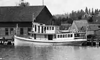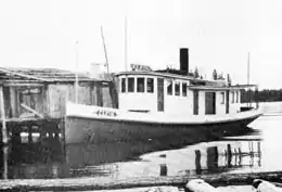 Elfin was built at Pontiac, on the north side of Sand Point, on Lake Washington in 1891. The vessel was 54.5 feet (16.61 m)[1] ( or 60 feet (18.29 m))[2]) long, with a beam of 13.5 feet (4.11 m). Power was provided by a two-cylinder compound steam engine. The builder was Edward.F. Lee. The first owner was Capt. Frank Curtis, whose prior vessel, the Squak, had been sunk in a storm during Christmas, 1890.[2] The vessel was launched in April 1891. Other steamers on the lake, Kirkland, and Mary Kraft brought spectators to the launching.[2]