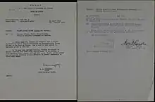 A Gestapo man named Max Wassmer was in charge of prisoner transports at Karlsruhe and accompanied the women to Dachau.[20] Another Gestapo man named Christian Ott gave a statement to American investigators after the war as to the fate of Plewman and her three companions.[21] Ott was stationed at Karlsruhe and volunteered to accompany the four women to Dachau as he wanted to visit his family in Stuttgart on the return journey.[22] Though not present at the execution, Ott told investigators what Wassmer had told him.