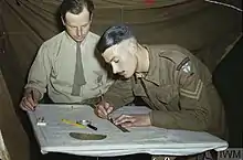 Lt T. L. Plewman (l) with Bdr O. Seman, July 1944, Caen, Normandy.