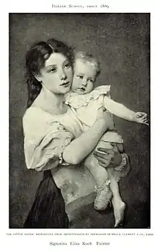 Koch was born in Livorno and studied under Louis Janmot and Charles Comte.[1] She exhibited in Lyons from 1854 to 1855 and in Paris from 1863 showing most notably Dangerous Encounter at the Paris Salon of 1868, You'll Have None of It at the Paris Salon of 1874, Misfortune at the Paris Salon of 1881, and Portrait of Mademoiselle Juliette Dodu.[1][2] Her work The Little Sister was included in the book Women Painters of the World, published in 1905.[3]