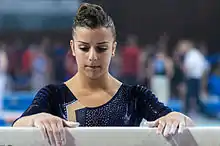 Elisa Meneghini (born 24 July 1997 in Como) is an Italian artistic gymnast, a member of the Italian national women's artistic gymnastics team,[1] the 2014 Italian champion in all-around, floor exercise and balance beam. As a junior, she won a silver medal in the junior team competition at the 2012 European Championships. She also attended the 2016 Olympic Games in Rio. She is the first italian gymnast to compete a full twisting back layout on beam (Difficulty G).