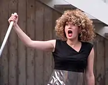 ![]() Elisabet Reinsalu in costume, performing onstage. | |
