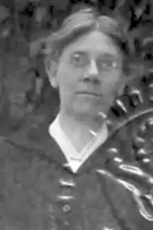 Leonard took furloughs home to the United States in 1902,[12] 1912[13] and in 1918,[14] and lectured on her work to women's groups and church groups. Sometimes she wore "a full Manchu dress" with headdress and shoes, when addressing American audiences.[13] In 1919, she attended the annual meeting of the American Medical Association in Atlantic City, New Jersey.[15]