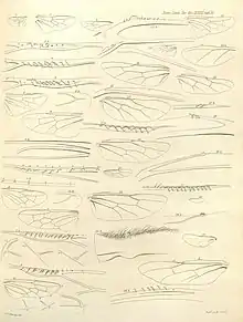 Insect wings, illustrating a paper prepared by E.F. Staveley and read to the Linnean Society of London on 21 June 1860.