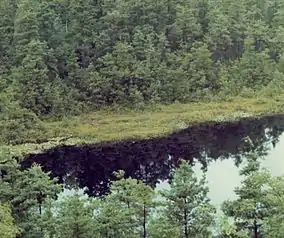 Ell Pond is a kettle hole in Hopkinton, Washington County, Rhode Island. It is surrounded by a swamp of red maple and Atlantic white cypress, and by steep granitic monadnocks. The small area contains communities of both hydrophytic and xeric plants, which makes it ideal for ecological research and education. It was designated a National Natural Landmark in May 1974.[1] In 1972, The Nature Conservancy purchased 50 acres (20 ha) including the pond to extend 218 acres (88 ha) of protected land owned by the Audubon Society of Rhode Island and the 1,002 acres (405 ha) of Rockville Wildlife Management Area owned by the state.[2] The preserve is jointly managed by all three entities. There are hiking trails in the preserve, but Ell pond is specifically not reachable due to its fragile environment.