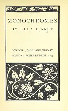 Ella D'Arcy (Constance Eleanor Mary Byrne D'Arcy) (23 August 1857 – 5 September 1937)[1] was a short fiction writer in the late 19th and early 20th century.